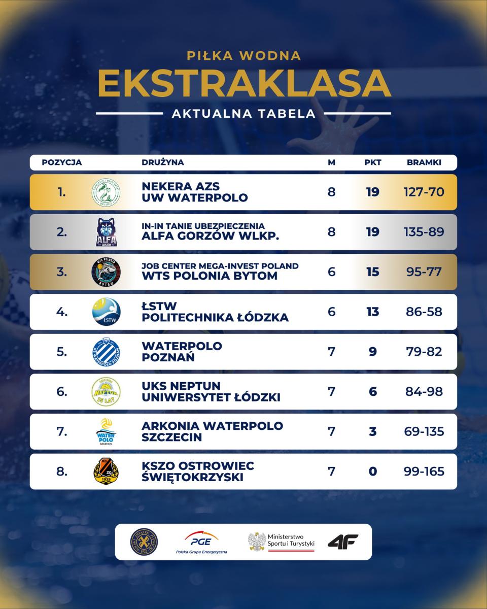 Rewanżem za pierwszą kolejkę będzie też spotkanie Nekera AZS UW Waterpolo z Waterpolo Poznań. W październiku w Termach Maltańskich zawodnicy Uniwersytetu Warszawskiego wygrali 16:6, a teraz stawką będzie dla nich utrzymanie pozycji lidera ligowej tabeli. Z kolei drużynie ze stolicy województwa wielkopolskiego trzy punkty pozwoliłyby zbliżyć się do czołowej czwórki. Początek o 20:30 w Centrum Sportowo-Rehabilitacyjnym Warszawskiego Uniwersytetu Medycznego.