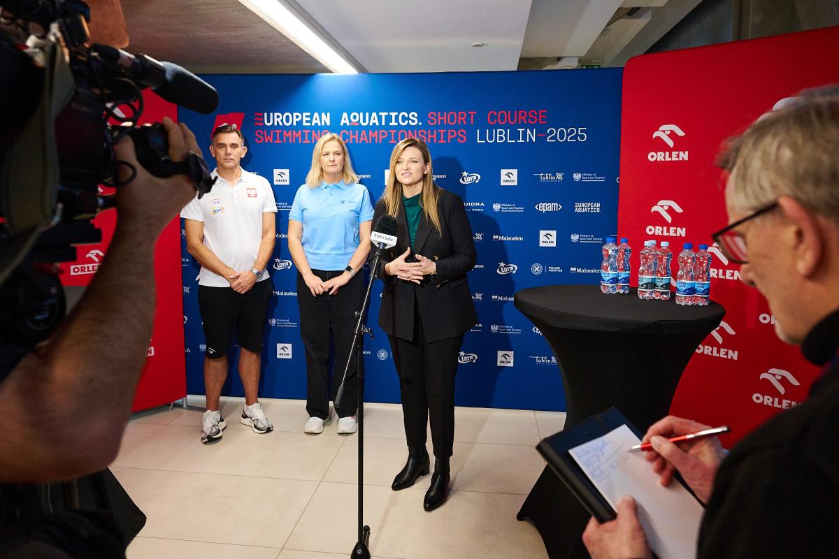 Drugi dzień mistrzostw Europy w pływaniu na krótkiej pływalni w Lublinie znów przyniósł medal dla reprezentacji Polski! Tym razem na trzecim stopniu podium stanęła sztafeta mieszana 4x50 metrów stylem zmiennym w składzie Aleksander Styś, Jan Kałusowski, Kornelia Fiedkiewicz i Katarzyna Wasick, która do tego ustanowiła nowy rekord Polski. To trzeci krążek biało-czerwonych w mistrzostwach w Lublinie!