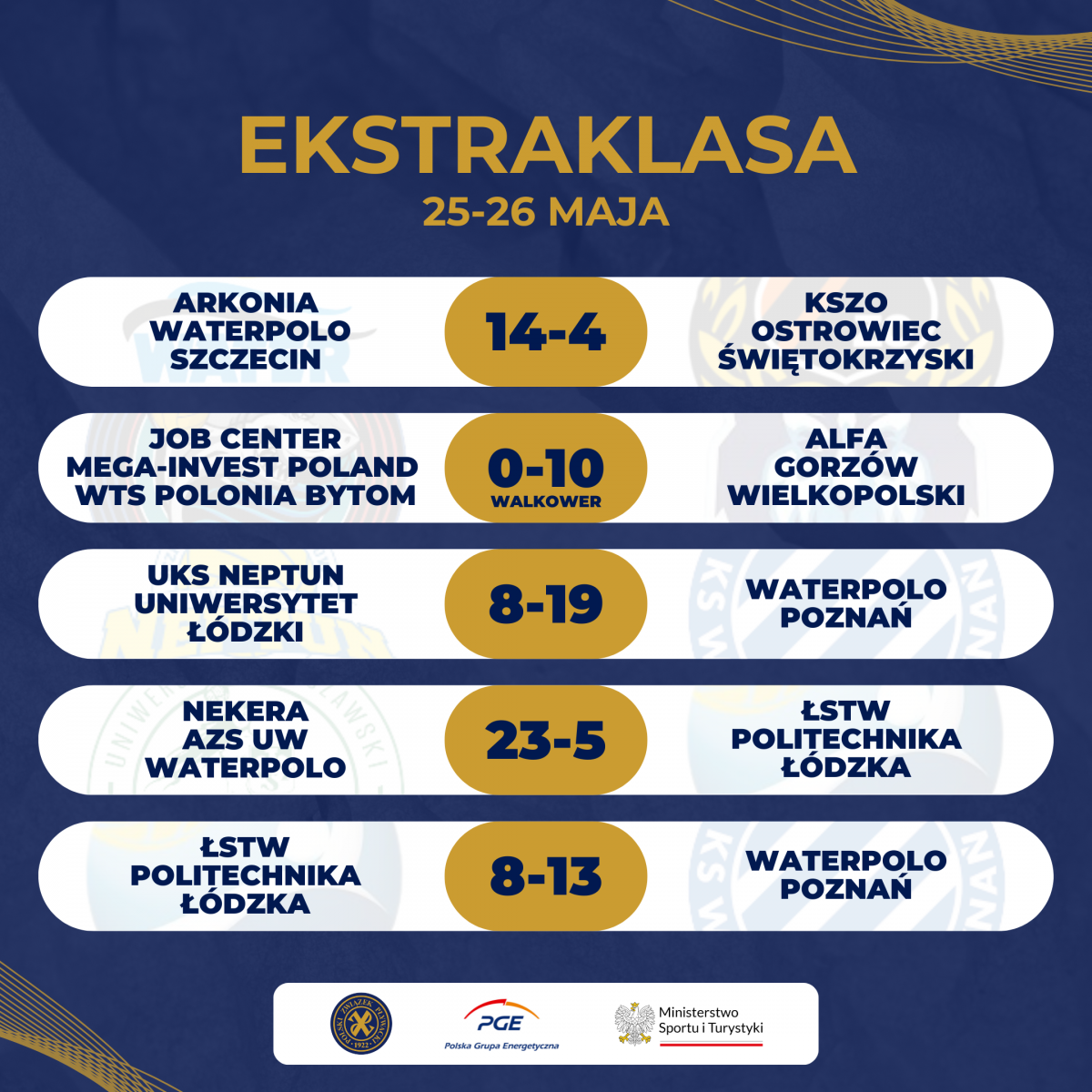 Zawodnicy Nekera AZS UW Waterpolo przypieczętowali zwycięstwo w Ekstraklasie piłki wodnej, bardzo pewnie pokonując w ostatniej kolejce drużynę ŁSTW. Tym samym podopieczni Marcina Bara i Jakuba Bednarka sięgnęli po trzecie mistrzostwo Polski w ostatnich czterech sezonach.